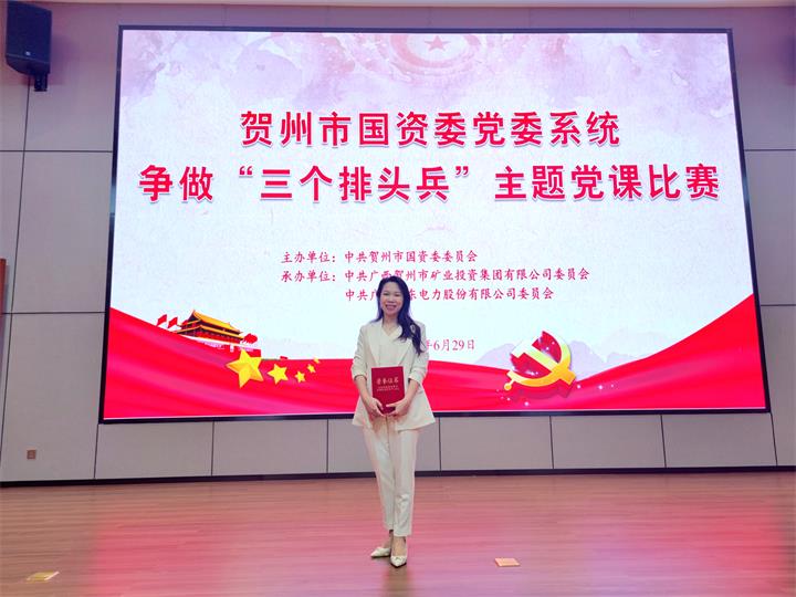 629日,賀州市國資委黨委舉辦國資系統爭做三個排頭兵主題黨課比賽。市國資委黨委班子成員出席活動。城投集團機關第一黨支部書記、董事會秘書湯彩燕,城投交公司人力資源部經理吳庚敏代表集團黨委參加并順利入圍黨課決賽。集團黨委副書記、工會主席梁輝露率黨員代表觀摩黨課,為參賽選手鼓勁加油。