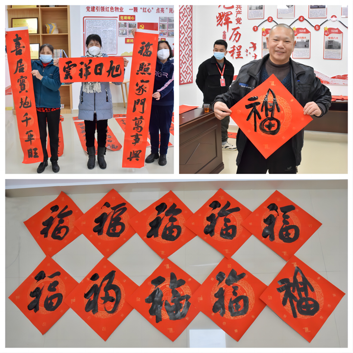 春節將至,為豐富小區業主文化生活,營造歡樂祥和的節日氛圍,1月16日上午,運營公司黨支部在賀州市城東新區公租房紅色物業示范點開展“紅色物業送春聯 墨香四溢暖人心”活動。活動邀請了多名市文聯、廣西書法家協會會員等優秀書法家走進小區,將紅紅火火和美好祝福送給廣大業主和群眾,用實際行動營造和諧、溫馨的新年氛圍。